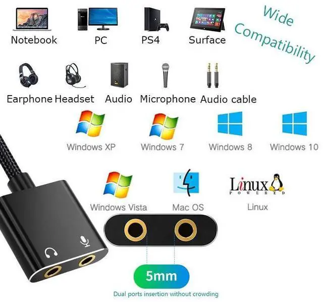 USB Audio Interface External Sound Card USB Adapter 3.5mm for Laptop Speaker PS4 Earphone USB Mic SoundCard..