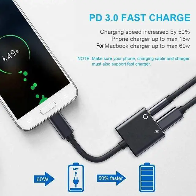 * MULTIFUNCTIONListening to music and playing games while charging your mobile phone, tablet, ipad or laptop. Usb c headphone adapter keeps your original headphone sound quality.