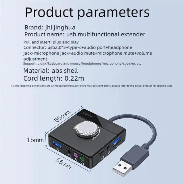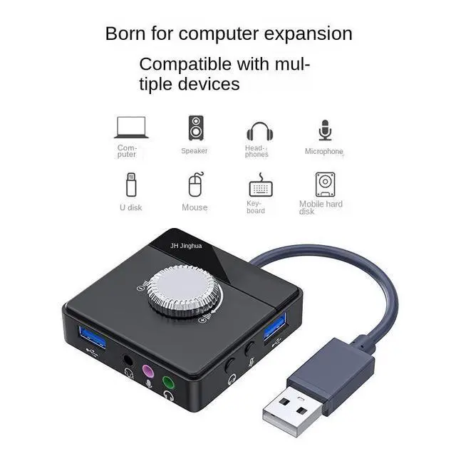 USB Hub External Sound Card Suitable for Computers Laptops PS4 External 7.1 Independent Audio Converter Headphones Microphones