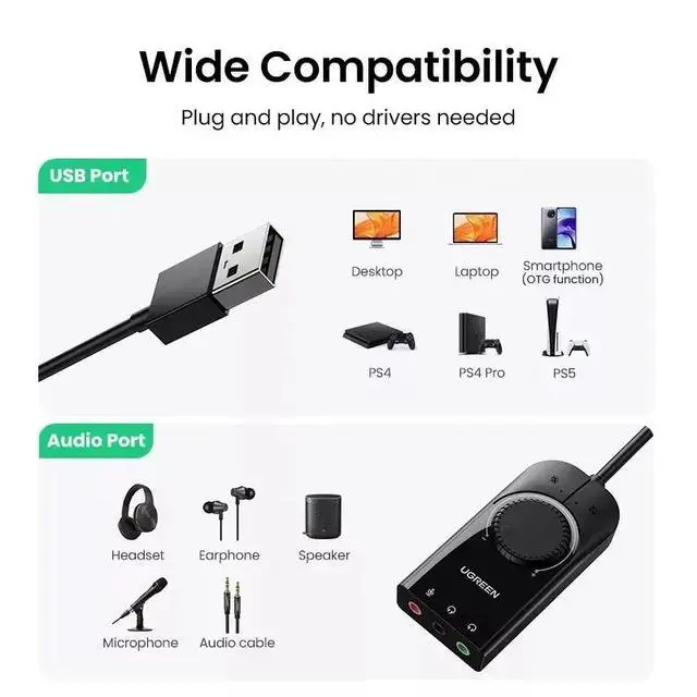 CM129 USB Sound Card External Sound Card with Volume Control USB to 3.5mm Jack Audio Adapter for Windows