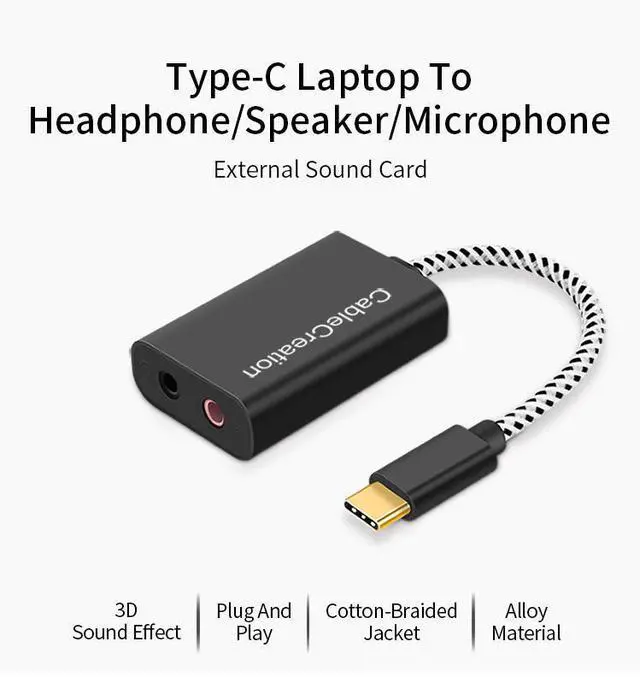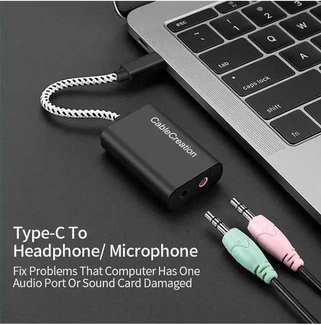 CableCreation USB-C to 3.5 mm Audio and Microphone Adapter is an ideal alternative to bypass a damaged sound card. It provides a solution to connect your existing headsets, earplugs, speakers, microphones and aux cables to your USB-C equipped computer and cellphone.