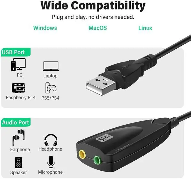 Additional Features- Plug & Play: No driver required& USB BUS-powered,no external power required. It bypasses the faulty sound card or the broken audio jack of your computer to regain its audio function. Stereo Jack Audio Adapter connectivity with 3.5 mm audio headphones, headset, speakers or microphone.