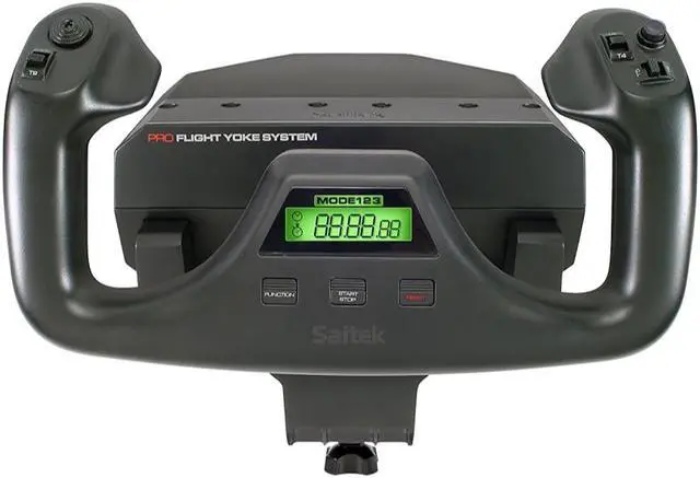 The Aspiring Pilot's Introduction to Flight Simulation Hardware Whether your preferred plane is commercial or private, the Saitek Pro Flight Yoke with included Throttle Quadrant is a must-have for beginning and advanced flight simulation enthusiasts. Delivering realistic and precise control while enhancing muscle memory, the Yoke and Throttle Quadrant with five total axes simulate what it feels like to truly fly an aircraft. Saitek's Pro Flight equipment is modular and interchangeable, and the Yoke anchors a comprehensive flight sim setup. There's no better way to begin your flight sim experience than with Saitek, the market leader in high-performance flight simulation hardware. Simple Plug-and-Play Installation The Throttle Quadrant connects to the Yoke via PS/2 connector cable, and the Yoke directly connects to a USB port on your PC or Mac. You can then simply load your favorite sim, set controls in the sim's options menu, and you're all set for virtual flight without the need to load drivers or install extra software. The Yoke's four-foot-long USB cable frees you to place the controls where they're most convenient for you. Pro Flight Yoke with Durable Metal Shaft Unlike the mostly plastic offerings on the market, Saitek's Pro Flight Yoke utilizes a durable stainless steel shaft with precision bearings for smooth, predictable elevator and aileron control. Whether navigating the front-to-back, side-to-side, or vertical axes, all controls are right at your fingertips. The built-in stopwatch is perfect for timing approaches, and if your PC lacks available USB ports, an integrated USB Hub provides a docking station for additional Saitek hardware Pro Flight Throttle Quadrant with Detachable Knobs Every Pro Flight Yoke includes a Pro Flight Throttle Quadrant. For precise control over multi-engine aircraft, additional Throttle Quadrants are available. The Quadrant's levers are fully programmable. Detachable lever knobs enable you to customize your flight by configuring any combination of throttle, flaps, mixture or propeller pitch. Simply remove the lever knobs, create the configuration that works best for you, and then assign commands to the levers in your favorite sim. The levers' detents - physical markings indicating where a certain action takes places - simplify control of your plane's idle and reverse thrusters. Powerful Programming Software (PC Only) The Yoke and Quadrant combo comes with 25 buttons and switch positions, more than enough to assign the essential controls in your favorite sim. However, if you need even more programming capability, simply go to the Downloads page on Saitek.com and download the Drivers and Software for your computer's operating system. You can then use a three-position switch to cycle through three different modes. The ability to switch modes elevates the total number of user-definable controls to 75. Rugged Mounting Hardware Saitek's Pro Flight Yoke and Throttle Quadrant are both equipped with adaptable mounting clamps which provide the freedom to configure your kit in any manner you see fit. Whether on top of your desk or clamped to the front, you can securely place the controls exactly where you want them.
