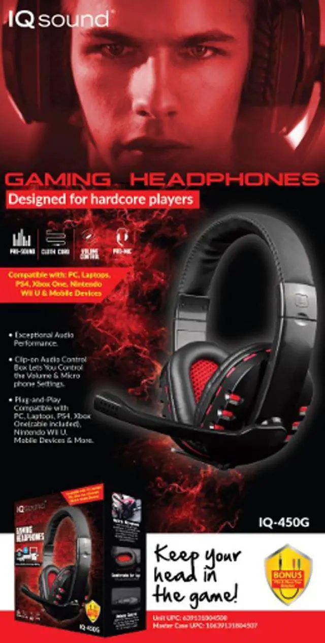 Adjustable Headband Universal Compatibility: Works with PC, Laptops, PS4, Xbox One (adapter included), Nintendo Wii U, Mobile Devices and More. Soft-cushioned ear cups rest gently on your ears Adjustable headband for your comfort Rich and crisp bass response Rotatable Omni-directional Condenser Microphone Ensures Clear Conversation Stereo Surrounding Sound Effect Adjust the Volume without Taking Your Eyes Away From the Battle Field with the Equipped In-Line
