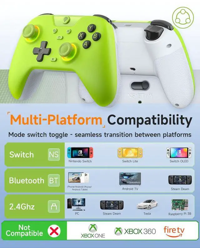 Our controller is designed to be compatible with PC, Switch, iPhone and Android. This versatility ensures that users can enjoy the same controller across various devices, providing a consistent gaming experience. NOT Compatible with Xbox One, Xbox 360, FireTV