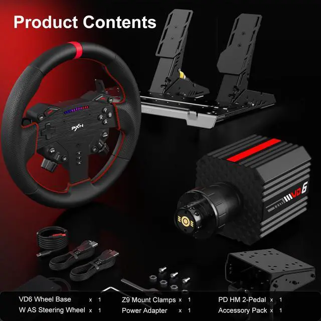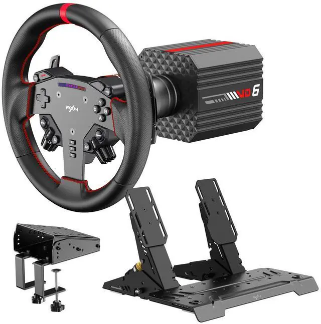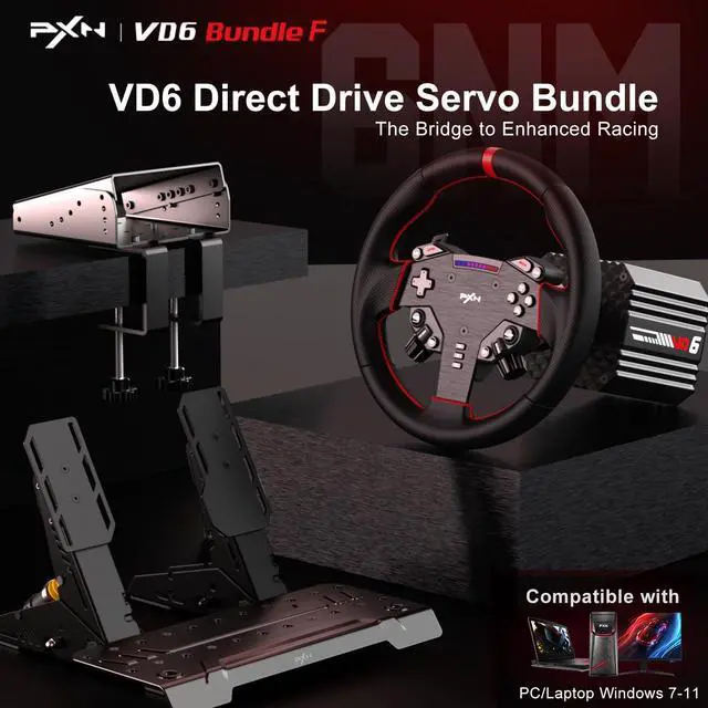 The PXN VD6 6Nm Direct Drive (also seen in variants like PXN VD6 Direct Drive Racing Wheel and W DS R2 Bundle and PXN VD6 DD Wheel Bundle) is a directdrive sim racing wheel bundle designed for PC racing games. It combines a hightorque wheel base with a racingstyle steering wheel and pedal set to offer realistic force feedback and precise control for driving and racing simulators on Windows systems.