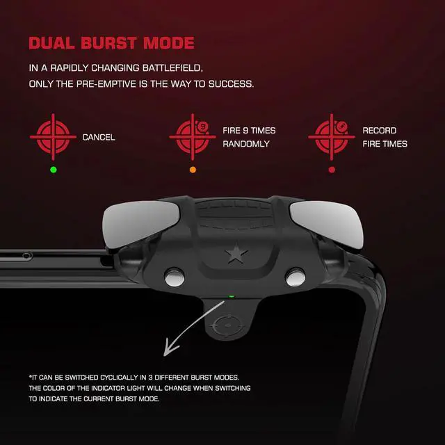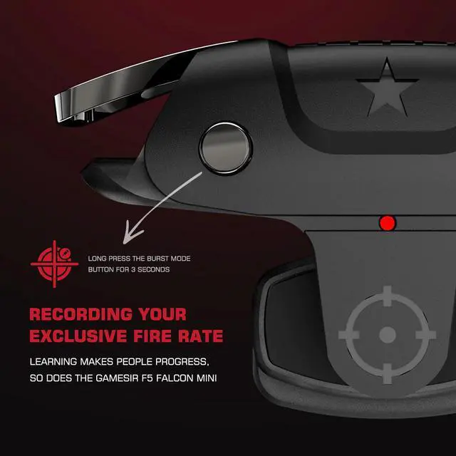 Recording Your Exclusive Fire RateLearning makes people progress, so does the F5 Falcon mini. By simply switching to the Learning Mode, F5 Falcon mini will start recording the time intervals for the next 10 clicks. Then F5 Falcon mini will simulate your every click motions by just long pressing the trigger button. Here you can enjoy the chicken dinner, with a way that can ease your fingers but still can slay your foes in games at the same time.