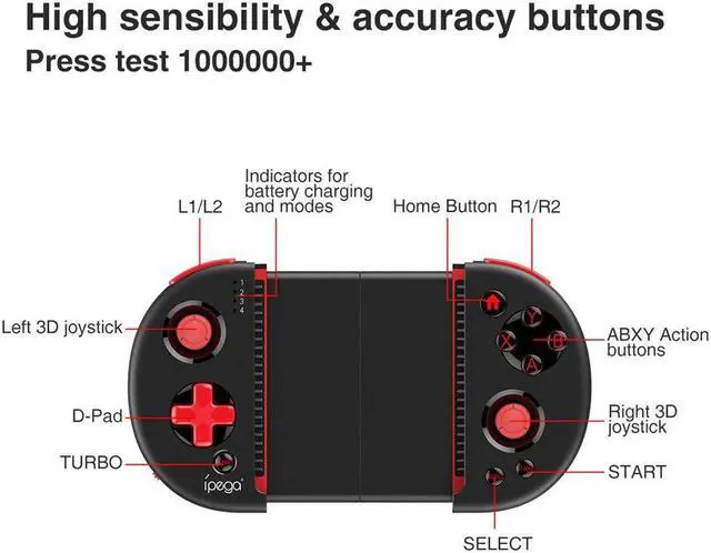 This Gamepad support playing games on bluetooth enabled Android devices and win 7/8/10 systerms pc without any drivers.