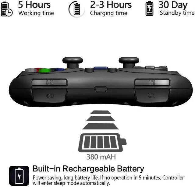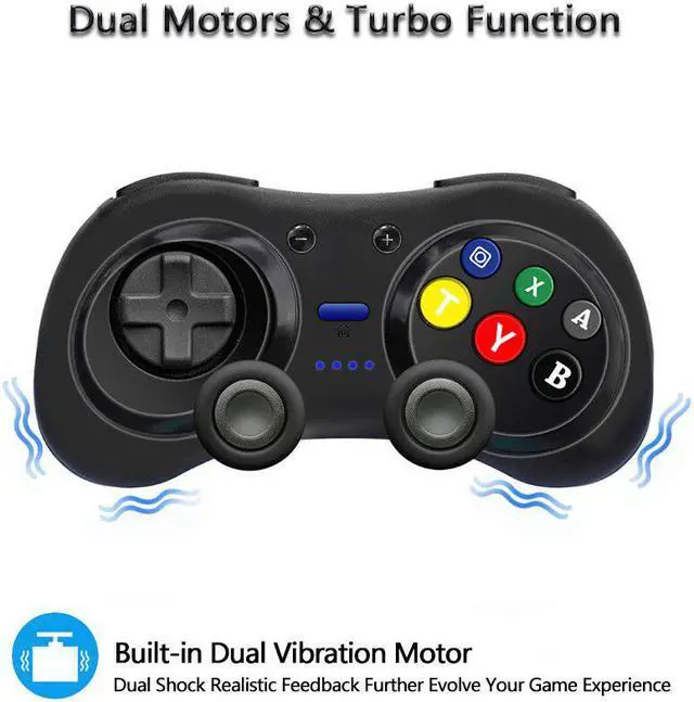 4) It supports motion sensing function via built-in Gyro; supports double-shock function via built-in dual motors; supports TURBO function.