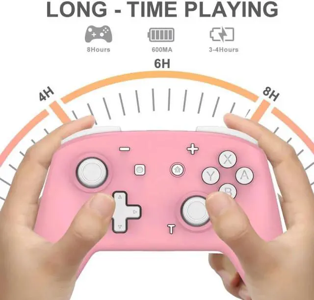 Long & Update Battle - This Switch Pro controller is wireless and can be easily paired with Switch console via Wireless. It only takes 2 hours for this pro Switch controller to be fully charged while it supports 6 to 8 hours of continuous playing!!!