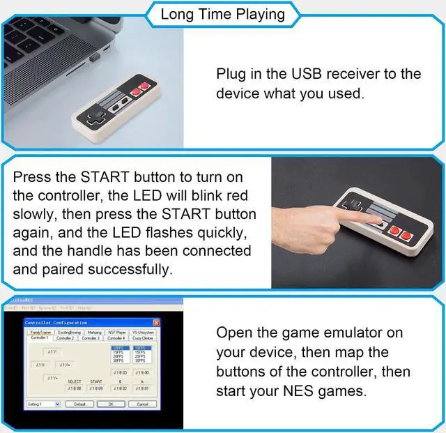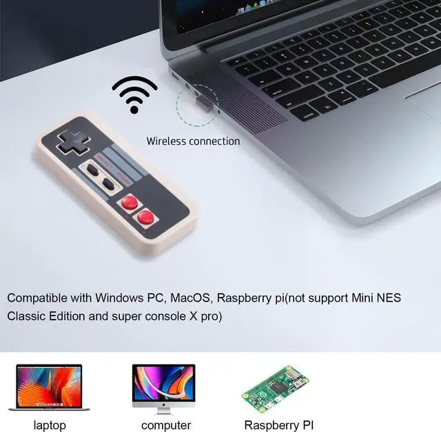 Wide Compatibility: Wireless Classic NES gaming controller is mainly designed for playing classic old school retro SNES /NES emulated games on computer or laptop, compatible with Windows PC(windows XP/7/8/10), MacOS, Linux, Raspberry pi (running RetroPie).