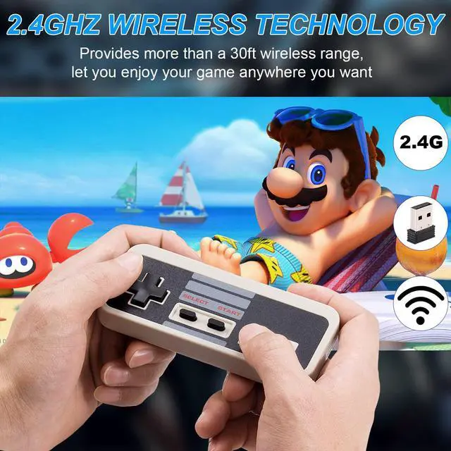 Not original NES controller, 2.4GH z Wireless Experience, You didn't have to sit so close to the TV and enjoy gaming within 30Ft (10m) wireless connection range. Generic USB Wireless controllers so all you have to plug them into a standard USB port