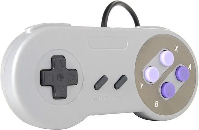 Classic SNES controllers with D-pad, Start, Select, A, B, X, Y and two shoulder buttons.