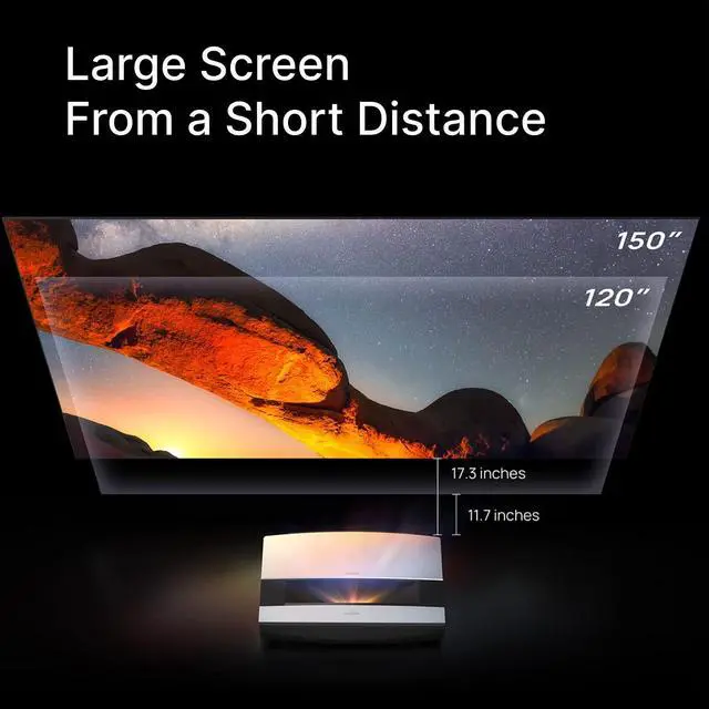 Bring the theatre experience home with XGIMI Aura, a premium ultra short throw laser projector. Enjoy stunning native 4K UHD visuals, vivid brightness, and a massive 150" screen from just 17.3" away. With Android TV 10.0 offering 5000+ apps and immersive Harman Kardon speakers, its the ultimate choice for home entertainment.