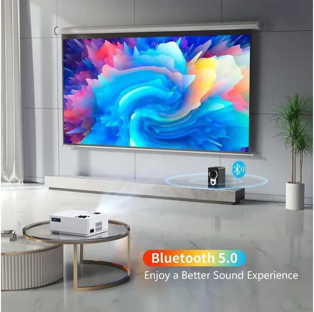 Bluetooth 5.0 & HiFi Stereo Speakers: Using two-way Bluetooth technology with a built-in Bluetooth 5.0 chip, and equipped with 5W HiFi stereo speakers and SRS sound system, it provides you with original audio fidelity, restores every detailed sound effect, and allows you to enjoy the ultimate auditory feast! Using the latest noise reduction technology, the efficient cooling system greatly reduces fan noise. You can connect the projector to your ideal Bluetooth speaker for private leisure time.