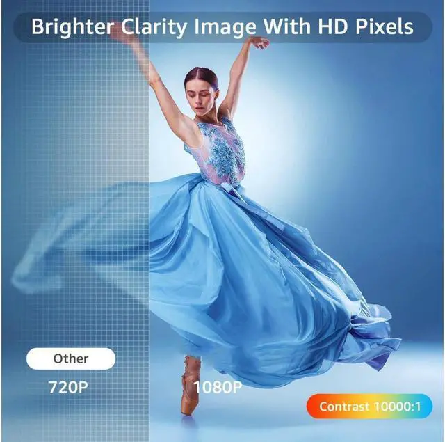 Native 1080P & 12000lm: Native 1080P Projector is a high-definition, high-brightness home theater projector. Designed with the latest NTSC color technology to provide superior image quality in terms of resolution, brightness, contrast, and color fidelity. 12000 lumens of image quality and an ultra-high 10000:1 contrast ratio give you sharper, brighter, and more detailed images. Tiny details can be captured on the big screen. Support smartphones and computers to play 4K videos.