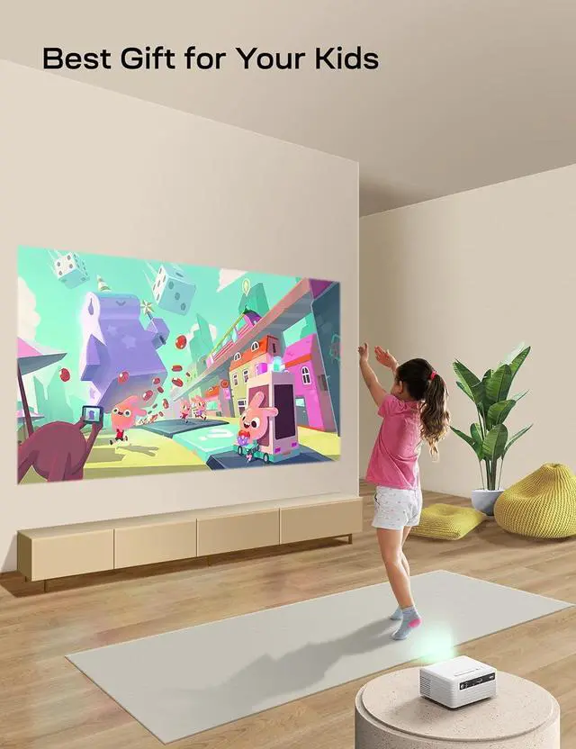Compact and Easy to Use This mini projector measures 13.72 x 10.92 x 5.84 cm, which is about the size of two soda cans. It weighs 420 grams and is designed to be compact and lightweight, making it easy for children to handle. Whether you're at home, traveling, or in any other location, you can enjoy movies and games with ease.