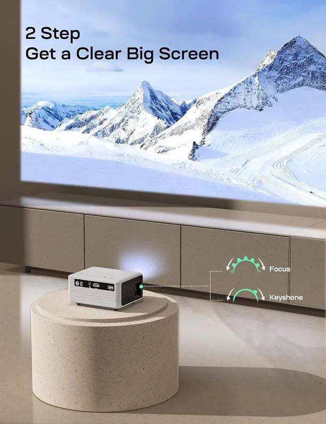 Large Screen and Zoom Function The Y3 mini projector supports a projection size of up to 120 inches. The recommended optimal projection size is between 30 inches and 100 inches (with an optimal projection distance of 1.3 to 3 meters). Additionally, it features a vertical keystone correction of ±15° and a 25% zoom function, allowing you to freely adjust the projection size and distance according to the room size to achieve the best visual experience.