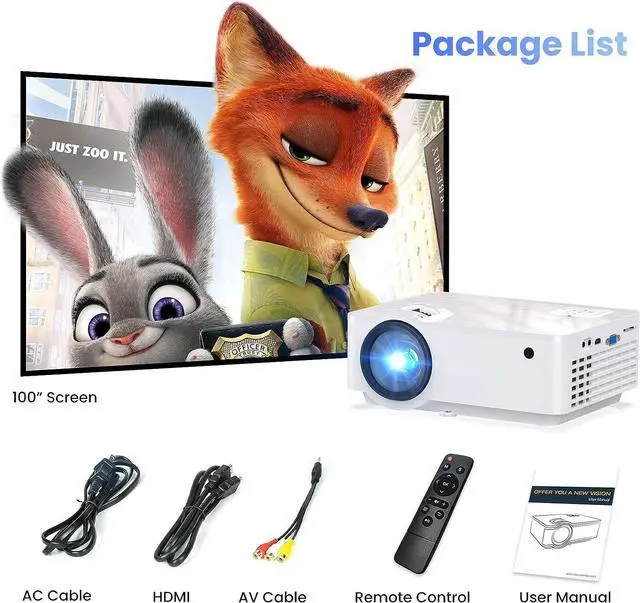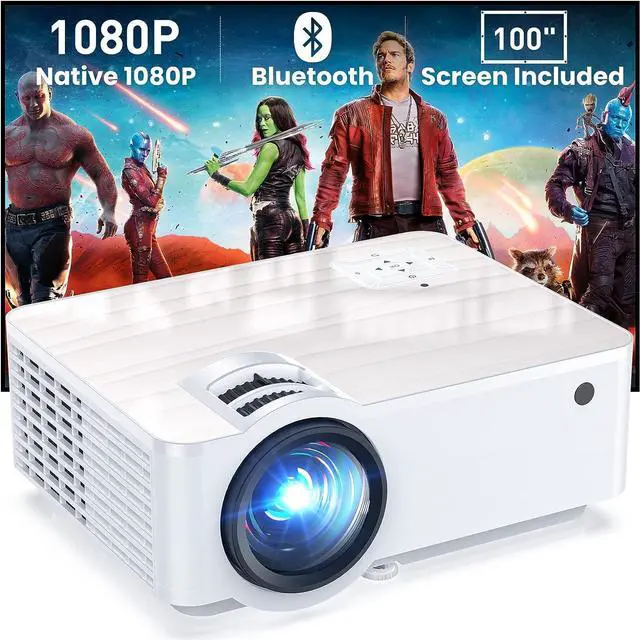 The mini projector offers the cinematic view with 1920*1080p native resolution, 9500 lux brightness and 10000:1 impressive contrast ratio in the comfort of your home. The portable projector uses LCD display technology and LED light to produce clear, detailed images without compression. Additionally, the Bluetooth projector comes with 100 portable projector screen
