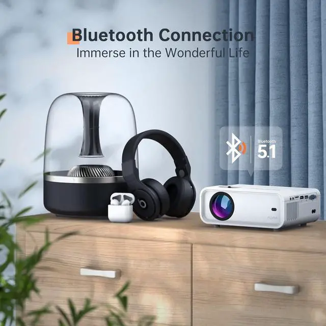 Bluetooth 5.1 & Hi-Fi Stereo Speaker ALVAR Bluetooth Projector has a built-in stereo surround speaker which provides the original audio fidelity. You can also connect it with Bluetooth headsets, Bluetooth speakers, and other Bluetooth devices as you want. Do1by sound is not supported. If there is no sound when playing videos like Netflix, please turn off Do1by sound on your connected devices or apps (Setting>Display & Sounds>Audio>Do1by Digital Output>Turn off Do1by Digital Plus)