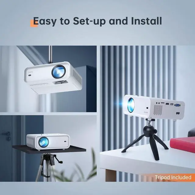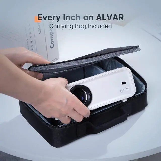 Tripod and Carrying Case Included ALVAR WiFi projector comes with a bag, which is easy to take out for parties and outings with your friends. Tripod also makes it easier to secure the projector in your home. It can be placed on any table and is very simple to install. The projector also has screw holes for mounting upside down on the roof.