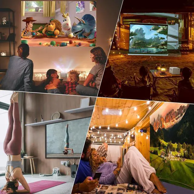 Mini Portable ProjectorThe POYBPCY mini projector only weighs 0.95KG, and its compact size ( 18.5 * 13.5 * 11.5 cm) makes it easy to store and travel. With a 30" - 200" projection screen size and wireless screen mirroring, our portable projector is perfect for outdoor movie nights or presentations on the go. (Recommended projection distance: 2 M) (Projection Screen NOT included in package)