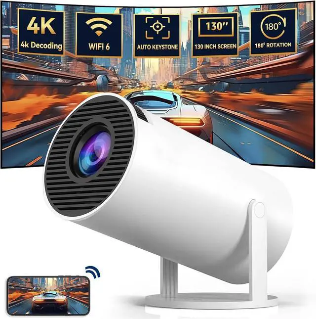 4K Projector Best Projection Support connecting Android /iOS phones for screen projection. The projector base has a 180° rotating stand that can be used as a projection screen background from floor to ceiling. Smart projector provides viewing size from 40" to 130", projection distance between 4 feet to 13 feet. Mini projector is small size, does not take up much space, and it is very easy to adjust the screen using the remote control. (2 AAA batteries are not included )