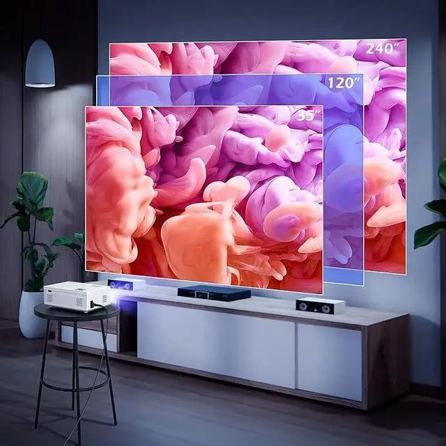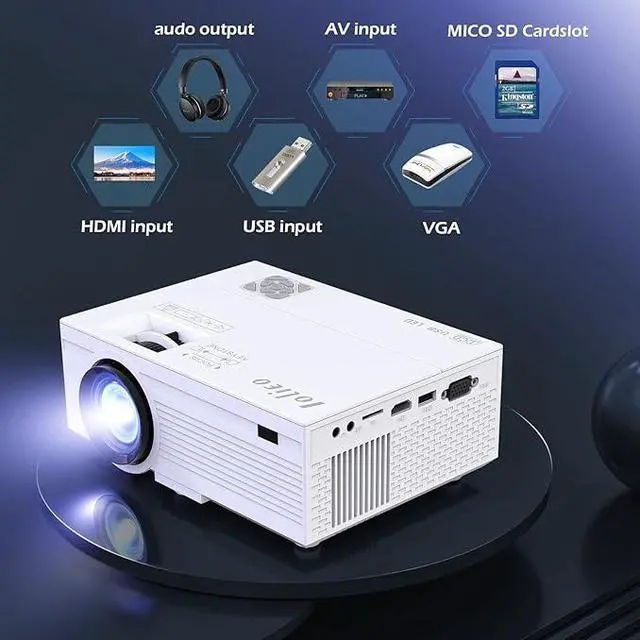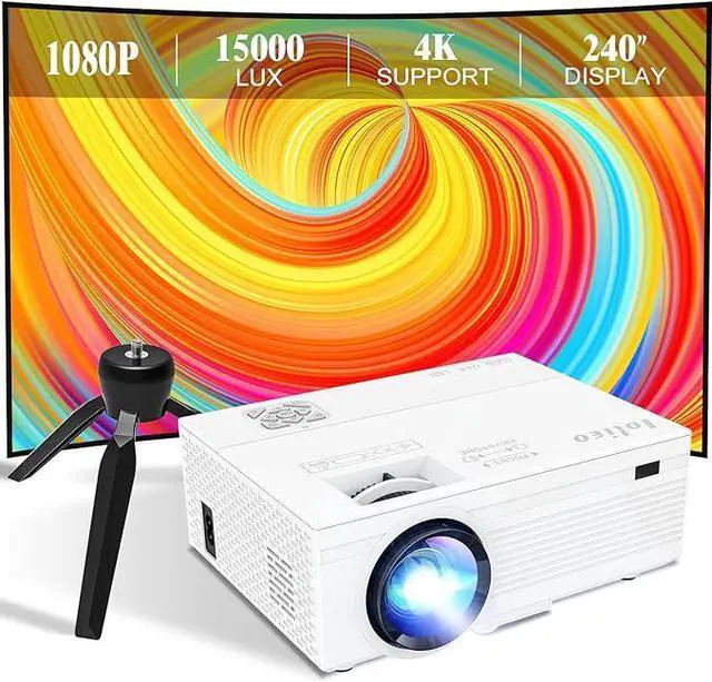 Iolieo 1080P & support 4K projectorIolieo projector supports resolution 1920*1080P, 380 ANSI brightness and 15000:1 contrast ratio, the movie projector uses a mirror image digital restoration technology to bring the picture up to 18 million color gamut and 100% RGB signal perfectly, uses highly refractive 7-layer glass lens and LED diffuse reflection eye protection light source it can present you with a wonderful visual feast, is an excellent choice for projector