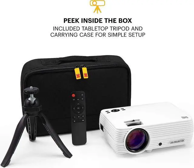 BRING THE BIG SCREEN TO GO | Travel-Friendly Design Fits an Entire Home Theater System in One Convenient Device! | Set Includes Power Cable, AV Cable, Tripod, Case & Bonus Wireless Remote Control | Perfect for Family Game Night, Backyard Movies, Sharing Photos, Camping Trips, Playing PS3, PS4, Xbox One, Wii & So Much More