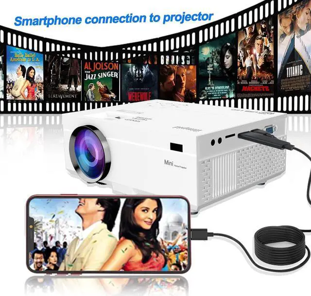 Big Screen & Stereo Speaker: The mini projector has a 4.9 - 16.4 ft projection distance, you will get a 50-200 inches HD large display. Built-in stereo Hi-Fi speakers for better sound, you can also connect it to external speakers to meet your higher quality sound needs. This portable projector is perfect for watching movies and games at home or outdoors.