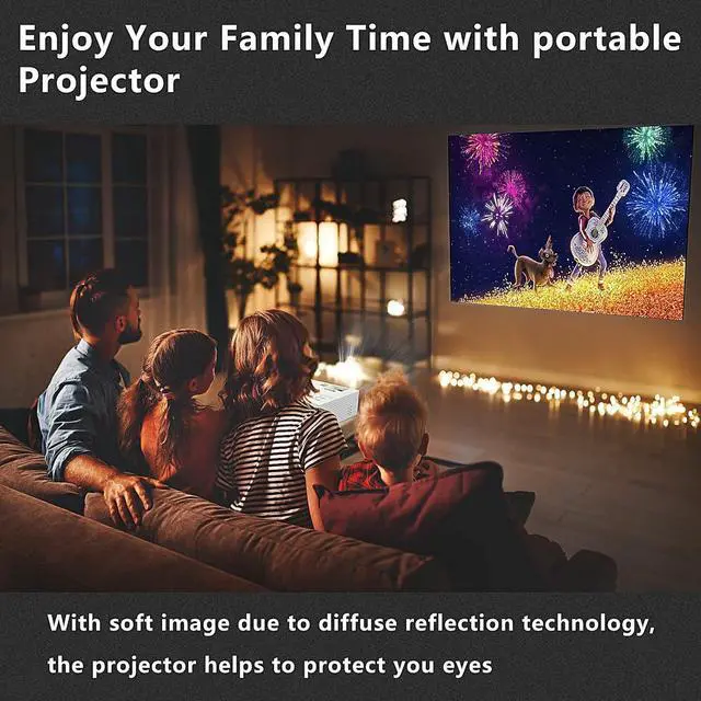 200" Giant Screen Home TheaterThis home projector rivals those the other (much higher priced) projectors, using the latest generation of image decoding CPU, the color reproduction is more excellent. 200'' giant screen projection size with 4.9 ft- 16.4 ft projection distance brings more joyful and immersive home theater feeling for you, gives more care to your eyes. Come experience it with your family.