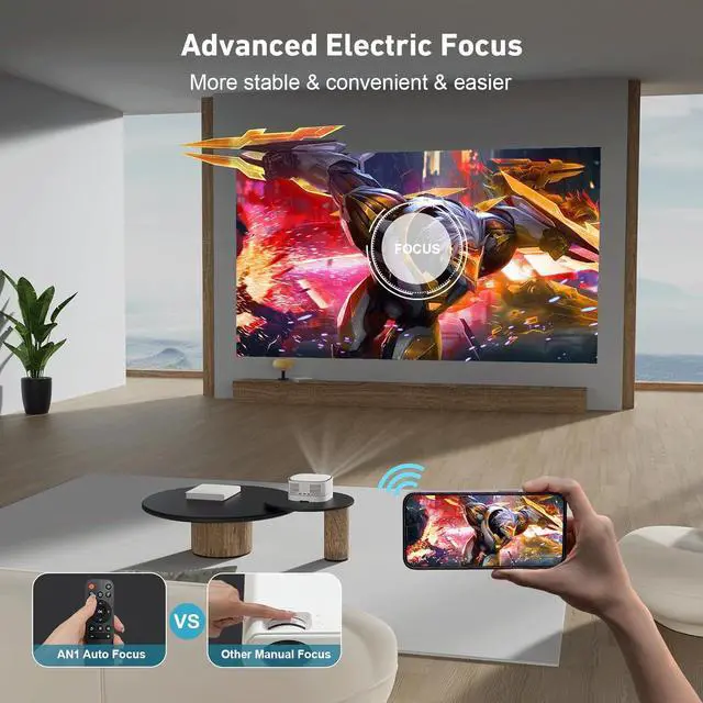 Easy Control Lisowod newest portable wifi bluetooth projector comes with an easy electric-focus ways, just stay in you couch and get image calibrated instantly with remote control.