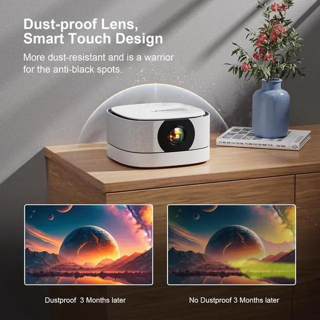 Unique DesignLisowod An1 Mini Projector with Wifi and Bluetooth comes with 10 levels brightness adjustment modes ranging from bright to dark, you can customize the brightness to suit your needs, making it energy-saving and environmentally friendly. Plus, with touch screen design is what sets us apart from others.