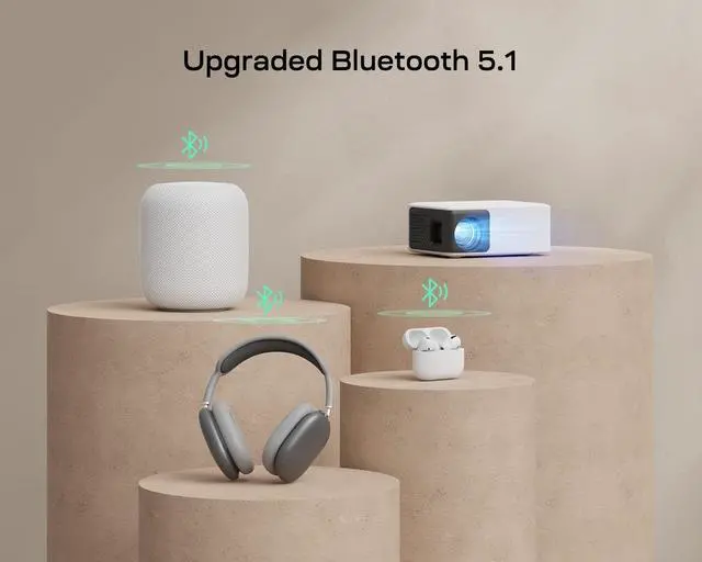 WiFi Connection & Bluetooth ConnectionThe mini projector can be connected wirelessly with your iOS/Android phone through the screen mirroring function on the same WIFI network. (Copyrighted streams video like NETFLIX cannot be played. ) Bluetooth function supports connection of bluetooth speakers, bluetooth headphones, bringing you an excellent sound quality experience. ( Bluetooth function does not support connection to smartphones)
