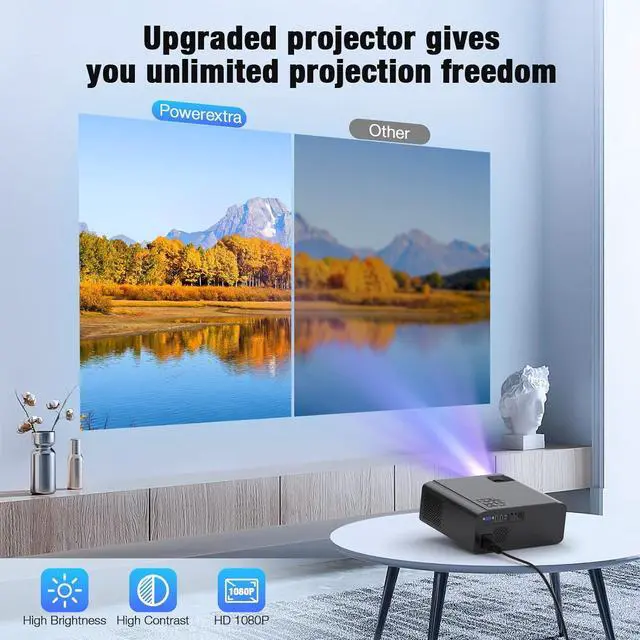 New 6D Adaption Technology: Video projector comes with the one-key 6D auto 4P keystone ±50°correction supports functions for both vertical and horizontal automatic correction as well as rotational automatic correction, will not miss any angle of the picture, improve the viewing experience.
