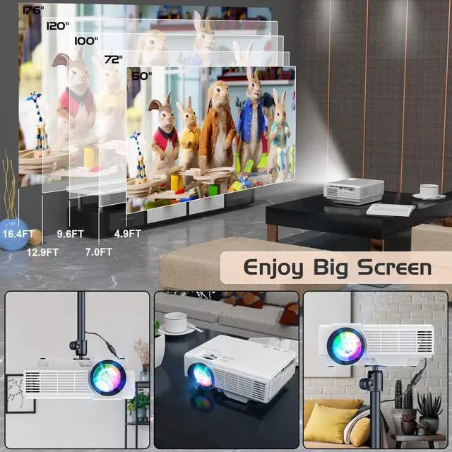 Portable Projector Screen IncludedOur portable projector includes a 100" projection screen that is tailored to meet our customer's needs. As opposed to other projectors, our included projector screen allows you to set up your own home theater anywhere to watch movies, TV shows, photos, and play video games. This portable, foldable, anti-wrinkle and easy to wash 100" projection screen is an Added Bonus, perfect for Daily home theater use.