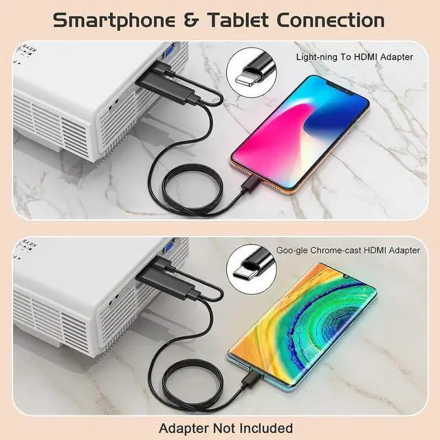 Projector with Wide CompatibilityThis outdoor movie projector is equipped with multiple ports for ease of use, including a built-in HDMI, USB, TF Card, VGA, and AV interface. You can connect this projector to a TV Stick directly, as well as Game consoles, PCs, Smartphones, Tablets, Laptops, DVD player, Micro SD card and USB flash drive, etc.