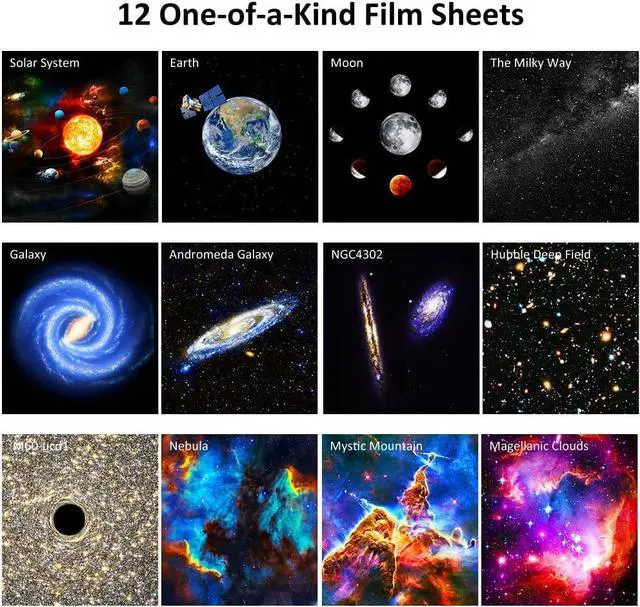 Panoramic Magnification Imaging: with comprehensive coverage, the star projector can completely cover the ceiling or wall of a room. The focus can also be adjusted by twisting the top screw ring for a sharper image, giving you a more immersive experience, capturing stunning, detailed images of the stars through 12 one-of-a-kind film.
