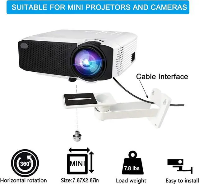 360° ROTATABLE HEAD-The Mini Projector Mount has a 360 Degrees Rotatable Head. (pls tighten all screw on the projector mount head. )