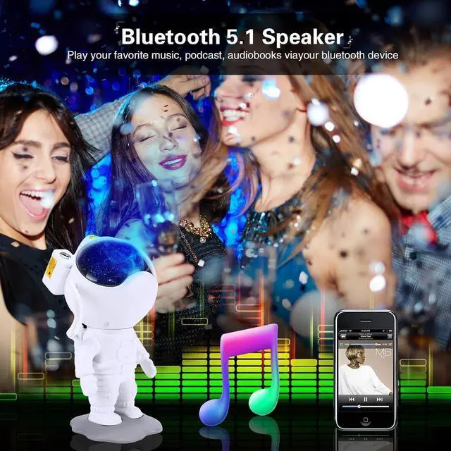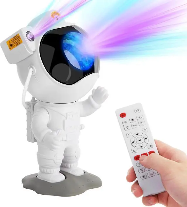 [Astronaut Nebula Star Projector] This star projector night light features 8 stunning nebula effects accompanied by twinkling green stars and moon. Project it onto the wall or ceiling of your room and it will bring the galaxy space light for you, creating a peaceful and relaxing atmosphere. Great ambient light for movie nights, date nights or game setups