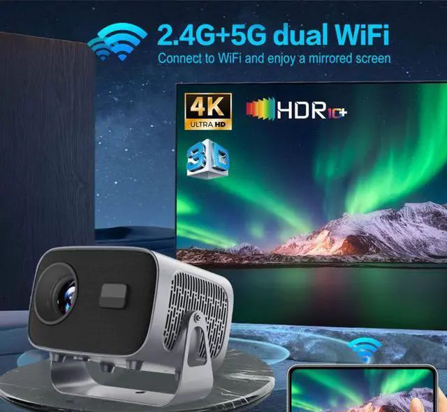 Enjoy big-screen entertainment with the A10 Smart Gimbal Projector. Featuring auto focus, Android 13, 300 ANSI brightness, and wireless mirroring, it's perfect for home theater, gaming, and portable use.