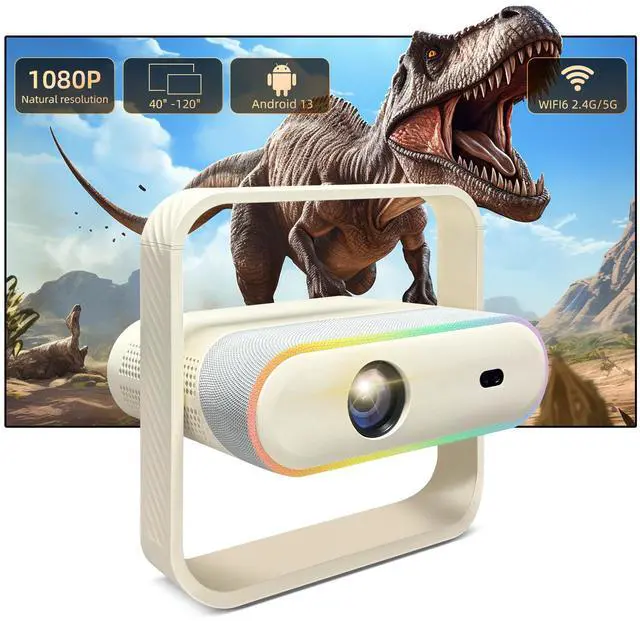 Transform your bedroom ceiling into a cinema with this Rotating Gimbal Projector. Featuring ultra-thin design, ambient light, 375 ANSI brightness, and Android 13, it's perfect for ceiling projection, home theater, and creative spaces.