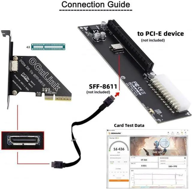 It can be connected e.g. one SSD or eGPU Graphics Card by using an optional cable. Suitable for small hosts, desktops, laptops, etc. to convert PCIE sockets to Oculink sockets, with fixing holes for fixing.