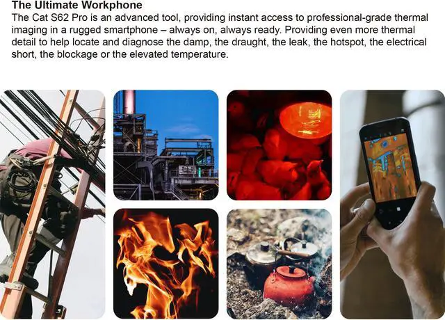 The Cat S62 Pro features several exclusive enhancements providing even more thermal detail to help locate and diagnose the damp, the draught, the leak, the hotspot, the electrical short, the blockage or the elevated temperature.