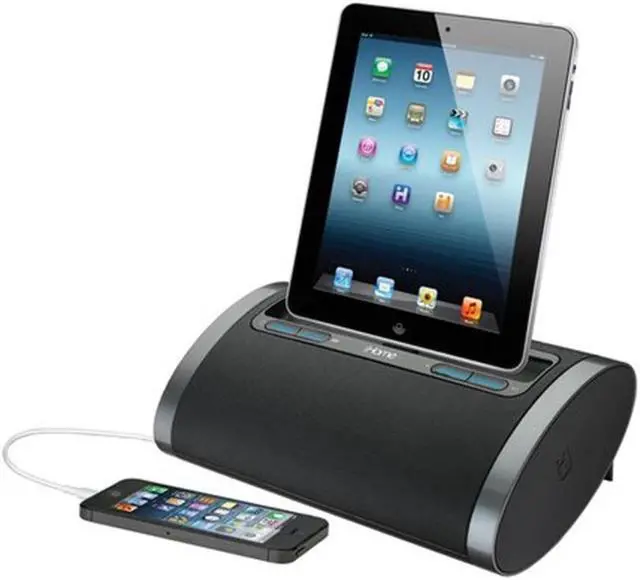 L'iD48 est un système stéréo pour iPad, iPhone et iPod qui vous permet de charger et de lire votre iPad, votre téléphone ou votre iPod. Profitez de votre musique et ne ratez jamais la batterie grâce à la batterie rechargeable intégrée longue durée. Reposez votre iPad pour regarder des films avec un son exceptionnel. L'iD48 comprend également les circuits SRS TruBass et la technologie sonore Reson8® pour une expérience audio exceptionnelle. Non compatible avec le connecteur Lightning. ACCESSOIRES Logo à connecteur 30 broches pour iPhone, iPod et iPad Adaptateur universel pour batterie rechargeable Entrée ligne MP3 Amarrage Dock universel pour charger et lire iPad, iPhone ou iPod à quai Profitez de votre musique tout en gardant votre iPad, iPhone ou iPod complètement chargé.