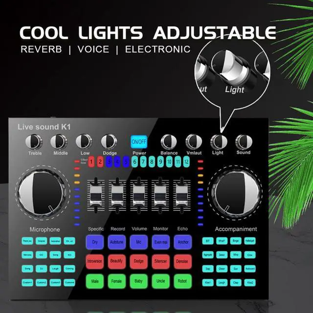 Features: large knob adjustment, fader adjustment, 27 kinds of sound effects, lighting, dual phone live broadcast.