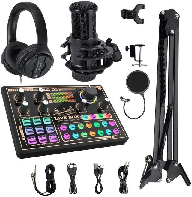 Professional Setup: Includes microphone, monitor headset, and live broadcast sound card for a complete recording solution.