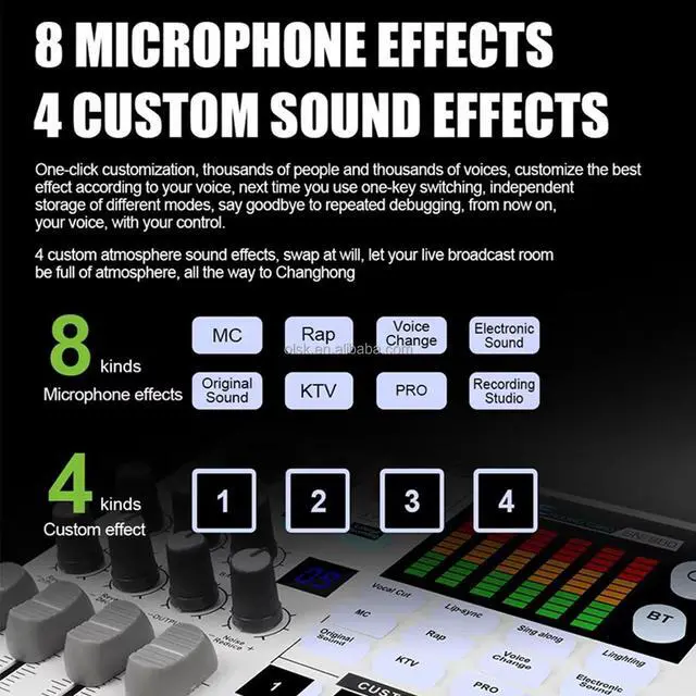 7. Supports four custom sound effects (save up to 6 seconds).