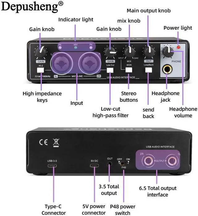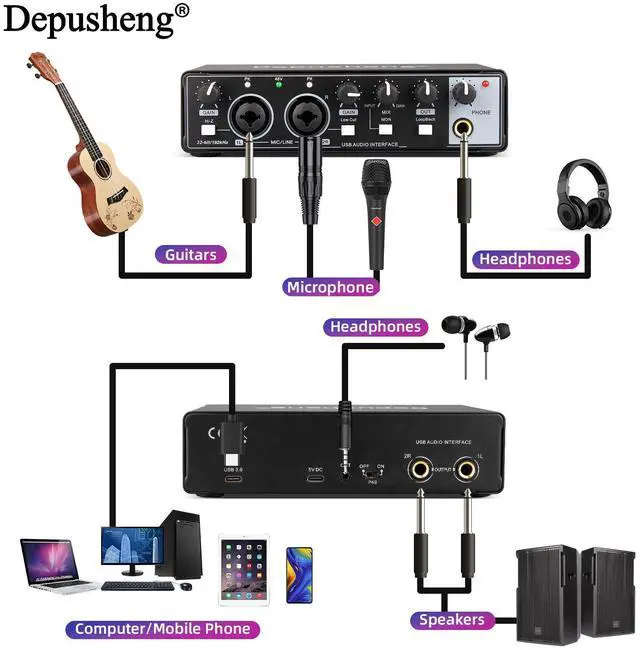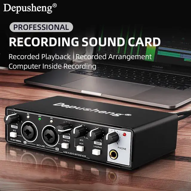 MD22 Professional 24bit 192kHz Audio Sound Card Usb Audio Interface for Live Recording and Karaoke