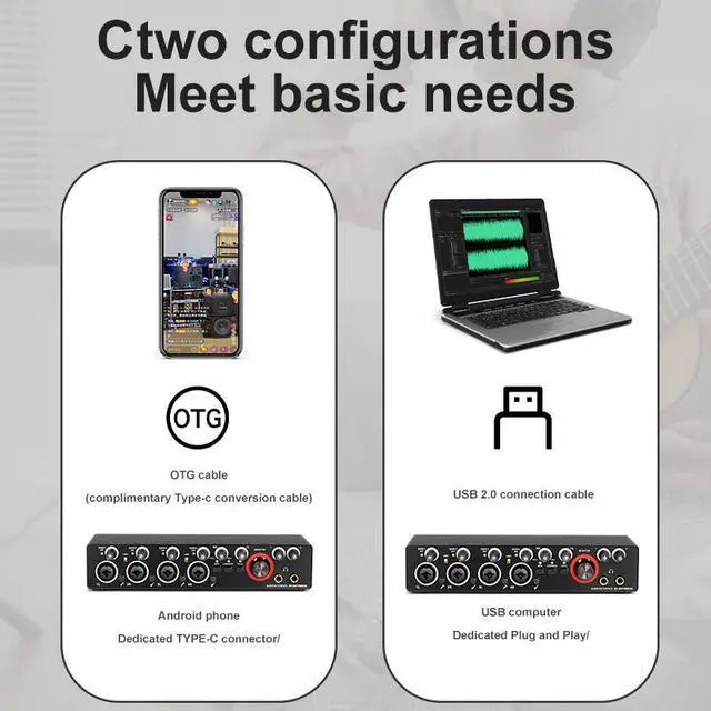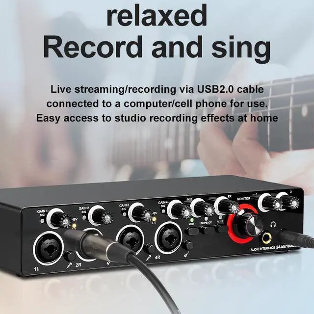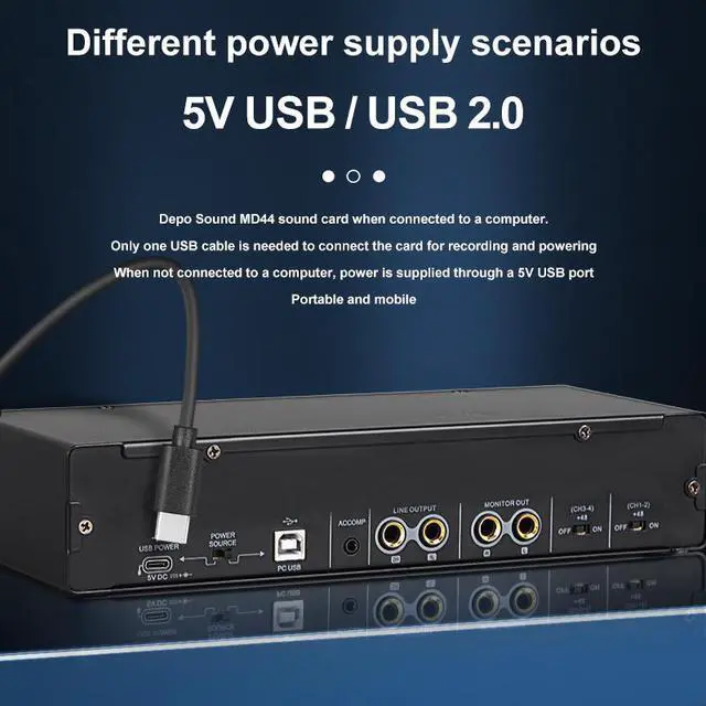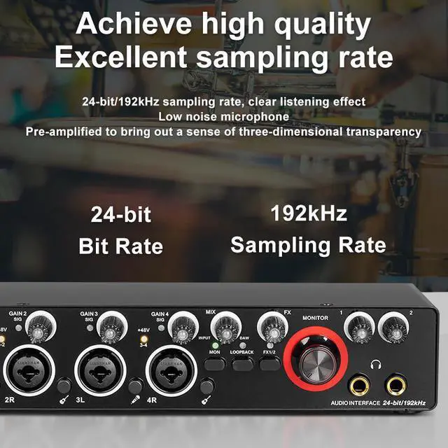Studio Recording Microphone USB External 48V MD44 24Bit 192KHz Audio Interface 4 Input Output Sound Card Mixer